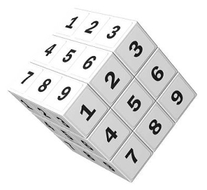 Yo uso el color blanco en la cara de arriba (A), pero se puede usar el color que se desee, no hay un color preferente a otro. Aunque le aconsejo que use el blanco (ya que este color está en todos los cubos de rubik que he visto) para este ejemplo, ya que será el que yo usaré para guiarte. No voy a usar la notación tracidional, ya que me parece un tanto liosa. Voy a usar mi propia notación con la intención de que me entiendan mejor. Cada cara consta de 9 cuadraditos, así que al estilo de un buen sudokero, voy a numerarlos del 1 al 9, del siguiente modo: