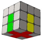 Pondremos el caso de que el cuadrado blanco se encuentre en el cuadrado 2 de cualquiera de las caras laterales (D,T,L,R). En principio, lo único que debemos de hacer es girarlo 180º en sentido horario o antihorario, y ya lo habríamos colocado en la casilla 8, que es lo que queremos.