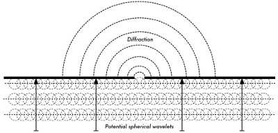 La segunda pega está en que si el principio es correcto también deberíamos tener ondas propagándose en sentido opuesto. En palabras llanas: ¿por qué hay que trazar medias ondas secundarias y no completas?