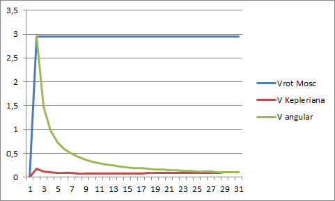 Otra conclusión es la contribución de la materia oscura a la rotación del bulbo galáctico, por los valores que he alcanzado, no debería despreciarse, alcanzando mayores velocidades de rotación que del modo Kepleriano.