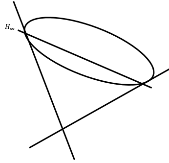 Estoy hablando justamente de esa hipérbola. En el caso del espaciotiempo proyectivo de Minkowski: