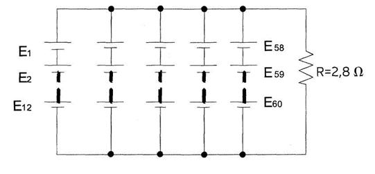 [FONT=Arial]Disponemos de 60 pilas de f.e.m.= 2 voltios cada una y una resistencia interna de R[FONT=Times New Roman]¡[/FONT]=0,5, formando un acoplamiento mixto (serie-paralelo), 5 ramas paralelas; cada una contiene 12 generadores en serie. Se conecta una resistencia de R=2,8 Ω. Calcular:[/FONT]