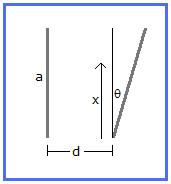 Un condensador esta formado por dos placas cuadradas de lado a, casi paralelas, formando un angulo pequeño theta entre si desde su separacion minima (d). Demostrar que la capacidad esta dada por la formula:
