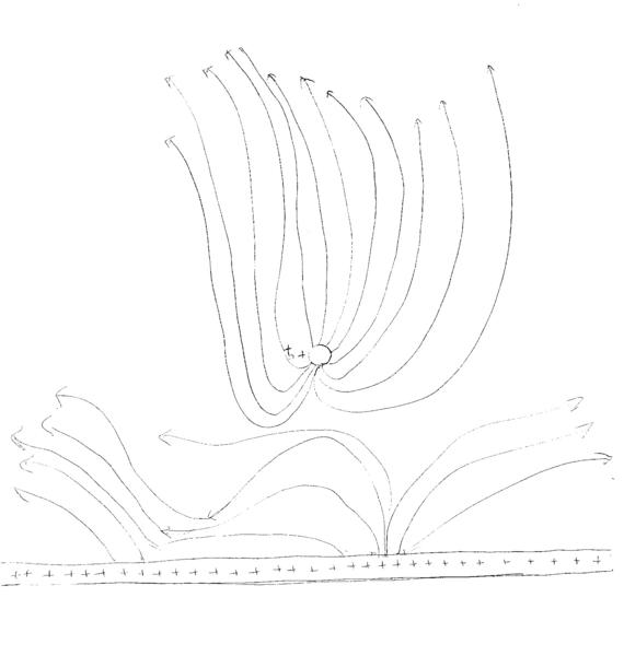 Yo he dibujado un alambre y cerca del alambre una carga puntual. De la carga puntual salen lineas de campo dirigidas hacia el infinito, ¿ del alambre también deberían salir lineas dirigidas hacia el infinito y de tal modo que se repelen ?.