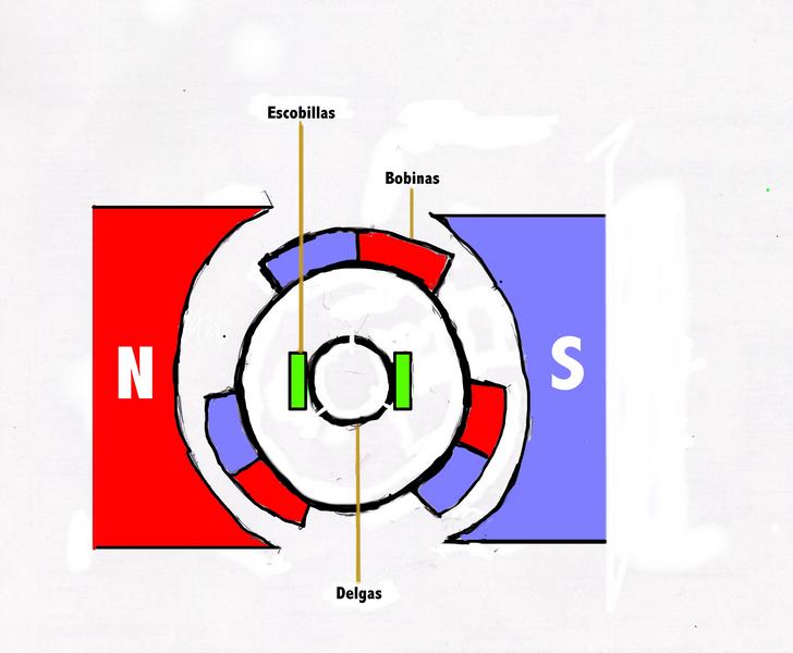 Esta imagen creo, debe representar las polaridades de un motor electrico cc (3 bobinas 3 delgas), de los que hay en una afeitadora. lo que quiero es que me digan si estan bien representadas, las polaridades o si hay un error