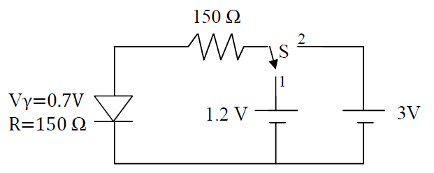 de conducción 0.7 V, resistencia equivalente serie 150 Ω. Teniendo en cuanta el circuito
