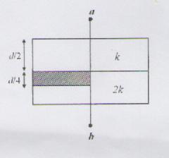 Un capacitor construido con dos placas planas y paralelas de área y separación de placas , como se muestra en la figura. Se colocan los dieléctricos indicados y la lámina metálica indicadapor el área rayada. Encuentre una expresión para: La capacidad después de este proceso. b) Calcule el cambio en la energía potencial después del proceso. En todo momento la diferencia de potencial entre a y b es