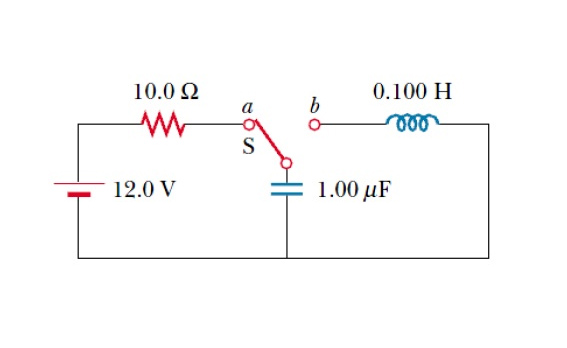 "En el circuito de la figura, el interruptor se encuentra en la posición a durante un largo periodo de tiempo. Después que el interruptor se coloca en la posición b, calcule: