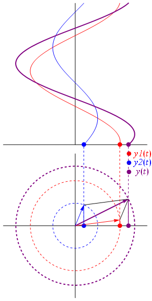 fase, la amplitud de la tensión suma (tensión total) no será la suma de las amplitudes de las tensiones en los elementos. Igual ocurre con los valores eficaces, que son proporcionales a las amplitudes de las señales.