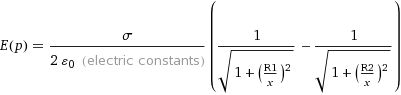 Un disco delgado con un agujero circular en el centro, llamado corona circular, tiene un radio interior R1 y un radio exterior R2 . El disco tiene una densidad superficial de carga