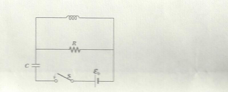 El interruptor de la figura se cierra en t=0. Antes de que esto pase, el capacitor está descargado y todas las corrientes son cero. Determine las corrientes en y y las diferencias de potencial a través de y