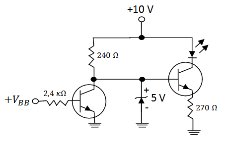 [FONT=arial]¿Qué corriente circula por el diodo LED? Si Vbb = 10 V y si Vbb = 0.[/FONT]