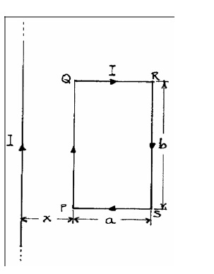 En el plano del circuito rectangular PQRS que muestra la figura, por el cual circula una corriente de intensidad I, se ubica una corriente rectilinea infinita de igual intensidad