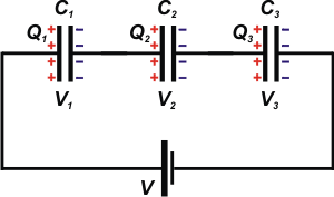 Se tienen tres capacitores, de capacitancias C1>C2>C3, inicialmente descargados. Se conectan en serie entre sí y con una batería de 10V, entonces: