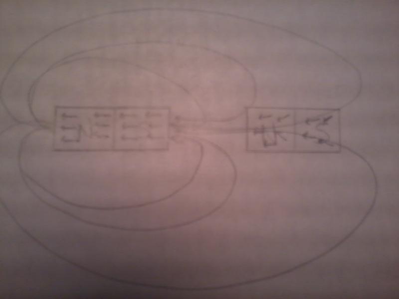 El dibujo estaria bien? A la izquierda dibuje el iman y a la derecha el material desmagnetizado. Las flechitas que dibuje sobre el material de la derecha vendrian a representar la direccion de los dipolos magneticos inducidos.