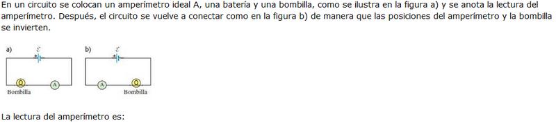 Están en serie, la teoria de circuitos dice que la corriente será la misma sin importar el orden, y de paso el enunciado dice que el amperímetro es ideal, así que yo tambien voy por: