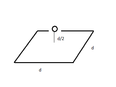 Una carga puntual , se halla a una distancia de la superficie cuadrada de lado y está arriba del centro del cuadrado como se indica en la figuara. Determine el flujo que atraviesa el cuadrado.
