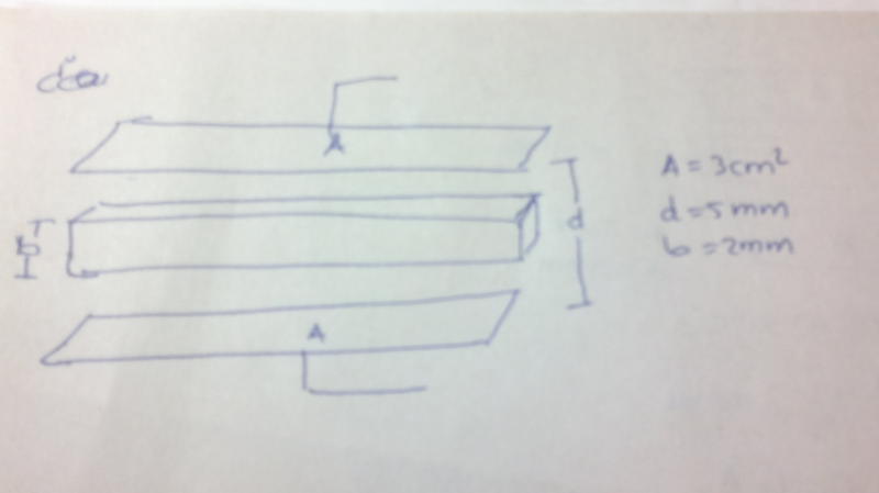 De todos modos, puede convenir hacer un tratamiento más cuantitativo. La idea sería ésta: supongamos que los lados de las placas miden y , siendo el lado de tamaño el paralelo a la dirección de introducción de la placa. Supongamos que la placa ha sido introducida una distancia . Entonces tendremos un sistema que equivale a un paralelo: por una parte un sistema como el anterior, pero con área y otro igual al inicial, pero con área .
