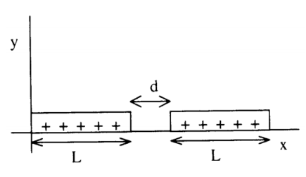 Dos barras iguales de longitud L están separadas por una distancia d, ambas barras tienen una densidad de carga lineal igual ¿cual es la fuerza de que una carga ejerce sobre la otra?