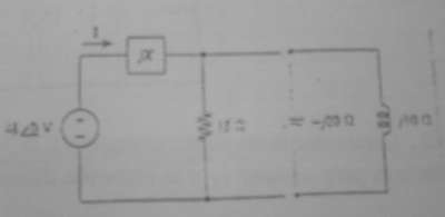 En el dibujo se obserda una fuente que vale V . Luego esta ese cuadrado que representa la reactancia que dice jX, luego tenemos una resistencia vertical de valor 15 ohm un capacitor vertical de valor -j20 ohm y una inductancia de valor j10 ohm.