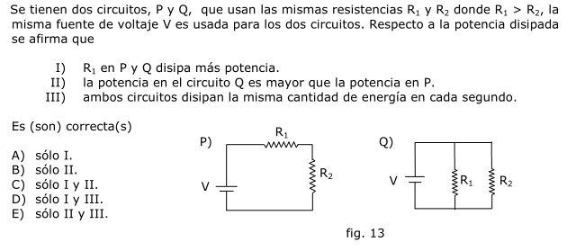 A ver, necesitamos calcular la potencia disipada en y la potencia total (que nos servirá para las afirmaciones II y III; porque o yo tengo muy olvidado todo esto, o la potencia es igual a la "energía disipada en cada segundo"). Las resistencias equivalentes de cada circuito sonEscrito por fly Ver mensajeHola, la segunda formula que escribiste con Latex estará bien?