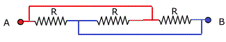 Trata de no dejarte engañar por el dibujo mañoso, las tres resistencias están conectadas en paralelo entre A y B: