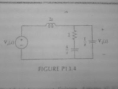 Por si no se aprecia en la imagen, la fuente de tension dice que vale , la inductancia vale 2 s, luego hay una resistencia que vale 2 y abajo un capacitor que vale 4/s , finalmente a la derecha el capacitor vale 1/s y ahi es donde se marca el .