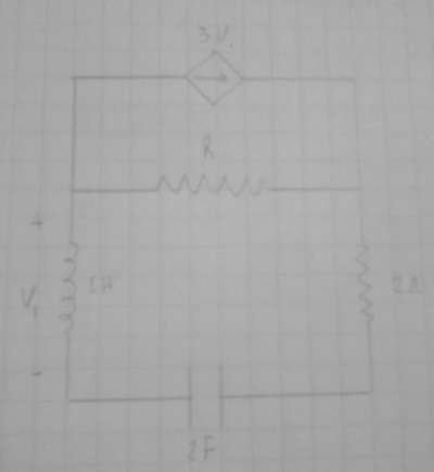 PD: la fuente de voltaje dependiente vale 3 v1 donde v1 es el valor que se marca sobre la inductancia de 1 H