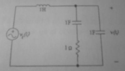 La fuente vale , la inductancia vale 1 H, la resistencia 1 ohm y los capacitores 1 F.