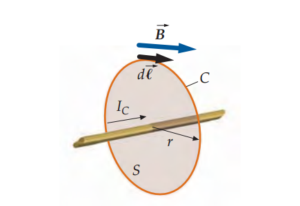 Por poner un ejemplo, al calcular el campo magnético generado por un hilo uniforme e indefinido se escoge una circunferencia con centro el eje del hilo. Así, el diferencial de trayectoria sería un vector diferencial tangente a la circunferencia y con el sentido indicado por la regla de la mano derecha en función de la intensidad.
