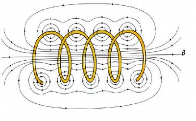 Mientras que las trayectoria de las lineas de campo creadas por un conductor rectilíneo, son circunferencias, las creadas por un solenoide serían tal que así