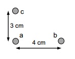 Las cargas de la figura son qa = 3 C, qb = -6C, qc = 2C, y se encuentran en el vacío.