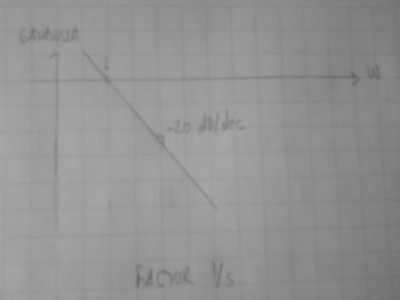Luego me falta graficar por bode, para lo cual grafico las 2 componenetes del modulo separadas, primero la grafica del factor K que seria una recta al valor K y luego la grafica del factor que tendria pendiente de -20 dB/dec