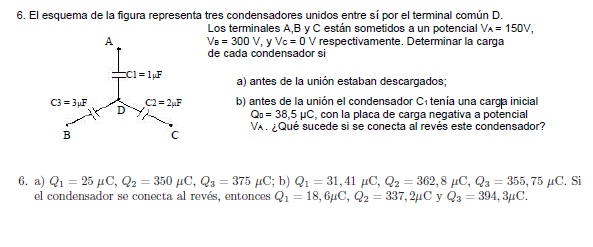Disculpa, pero los incisos a) y b) se hacen de la misma forma; si sabes hacer el primero ¿cómo es que no sabes hacer el segundo? En todo caso, la única diferencia entre los dos casos es que en el primero la suma de las cargas de los condensadores debe ser cero, mientras que en el segundo caso la suma debe ser .