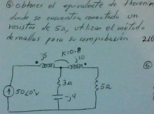 Este el el enunciado resolver por thevenin el circuito. Pero para eso debo tener las bobinas en Henrys, pero en el problema me dan los valores de las bobinas en terminos de J. Por lo tanto K la debo "convertir en J como en las bobinas.¿Pero como se hace para obtener K en terminos de J?