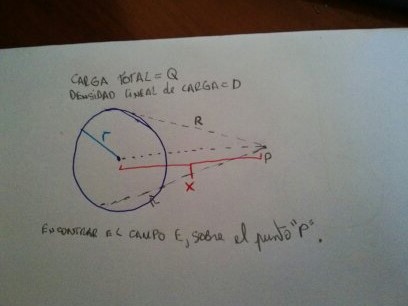 [FONT=Helvetica Neue, Helvetica, Arial, san-serif]se tiene una anillo cargado y se pide encontrar el campo eléctrico en un punto "p" que se ubica en el mismo plano del anillo, al "frente" de el a una distancia "x" de su centro. [/FONT]