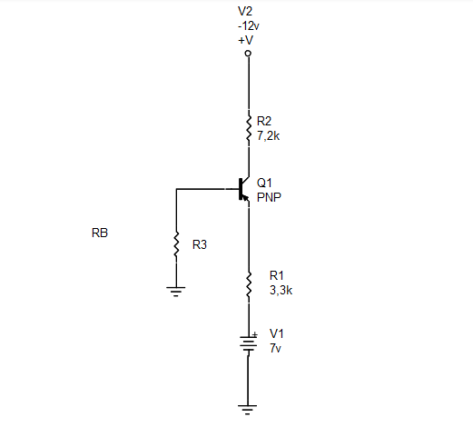 En el siguiente circuito hay un transistor con β = 170, calcular los valores de Resistencia en Rb para que el circuito se polarice en saturación, región Activa Ideal y en corte.