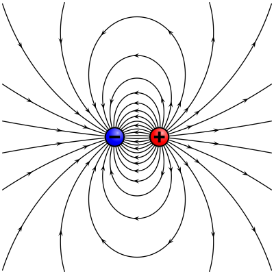 Hola, tenía una duda acerca de los dipolos. ¿Por que la carga positiva se atrae con la carga negativa si el campo electrico no entra en contacto? Con esto a lo que me refiero es a por que a una determinada carga se le aplica una fuerza de atraccion si las lineas de fuerza que salen de la carga positiva empujan hacia afuera a la carga negativa