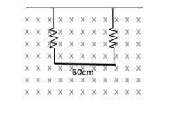 Un alambre de 60cm de longitud y 10 gramos de masa está suspendido mediante unos alambres exibles y está incluido en una zona con un campo magnético de 0'4T. ¾Cuál es la magnitud de la corriente que se requiere para eliminar la tensión de los alambres exibles que lo sostiene?