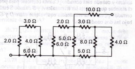 Calcule la resistencia equivalente que puede reemplazar a las redes entre las terminales para la figura mostrada.