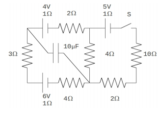 del condensador si a) el interruptor S está abierto y b) si está cerrado.