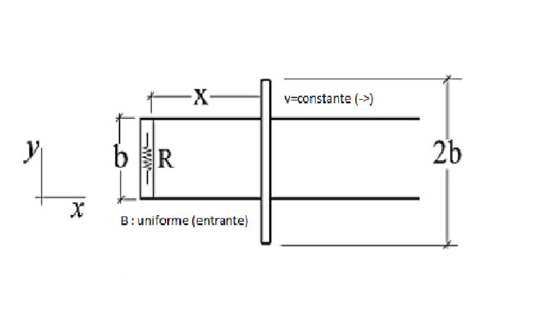 Halle la fem mediante el flujo magnético obteniendo Bvb , luego quice hacerlo mediante fem de movimiento y obtengo Bv(2b) .