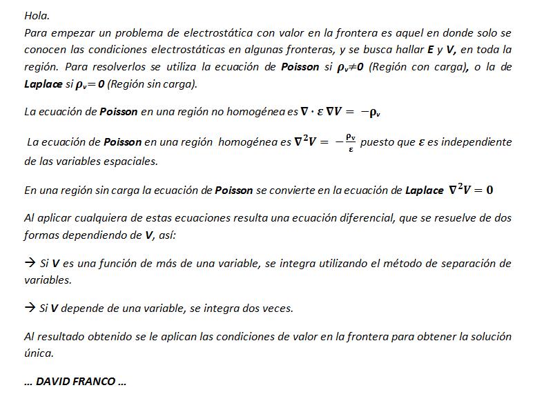 Alguien me puede aclarar cual es el proceso o las consideraciones que se deben tener en cuenta a la hora de resolver problemas de electrostatica con valor en la frontera?