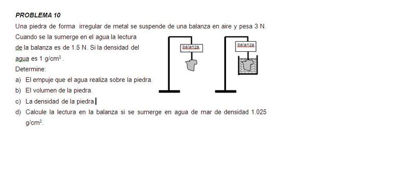 Yo saque el empuje era igual al peso sumergido ya que supuse que estaba en equilibro, osea el empuje seria 1,5N , ¿esta bien de esa manera?