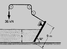 Ejercicio: Que altura h, hará que la compuerta mostrada justo se empiece a mover en la dirección de las manecillas del reloj. La compuerta tiene 3 m de ancho. R//3.67 m