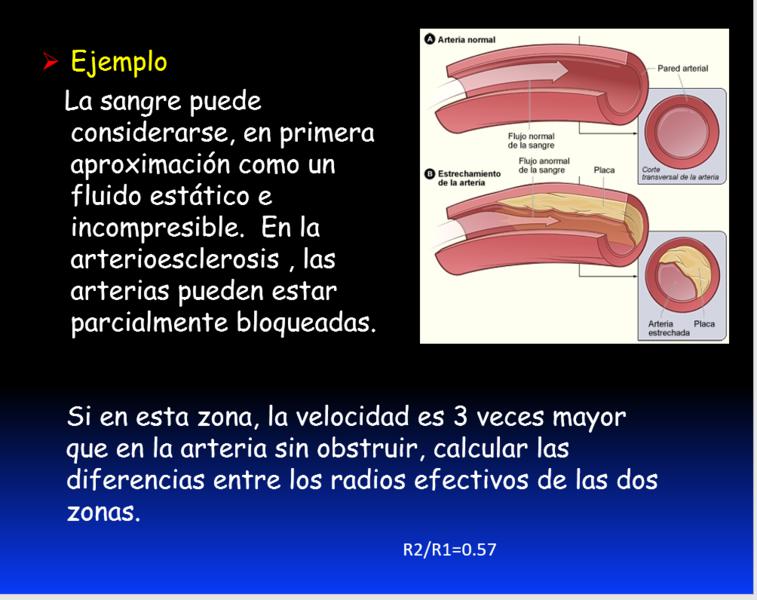la sangre puede considerarse en primera aproximación como un fluido estático e incomprensible. En la arterioesclerosis las arterisa pueden estar bloqueadas. Si en esta zona la velocidad es 3 vece smayor que en la arteria sin obstruir, calcula las diferencias entre los radios efectivos de las zonas.