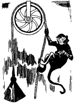 L. Caroll propuso el dibujo reproducido en la figura e hizo la pregunta siguiente: «¿En qué sentido se desplazará el peso suspendido si el mono comienza a trepar por la cuerda?»