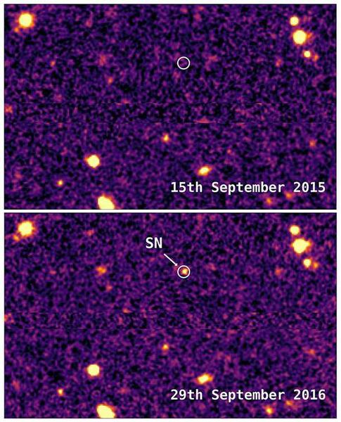 El estudio de la supernova DES16C2nm en la constelación de Sculptor descubierta por el Dark Energy Survey (DES) ha arrojado el resultado de que se trata de la supernova más lejana (y por lo tanto la más antigua) descubierta hasta la fecha.