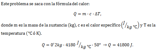 ¿Qué cantidad de energía térmica se necesita para elevar la temperatura de 200 g de agua desde 15 ºC hasta 65 ºC?